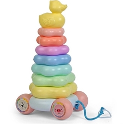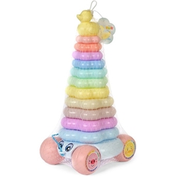 It's a stacking toy with a spin—literally!